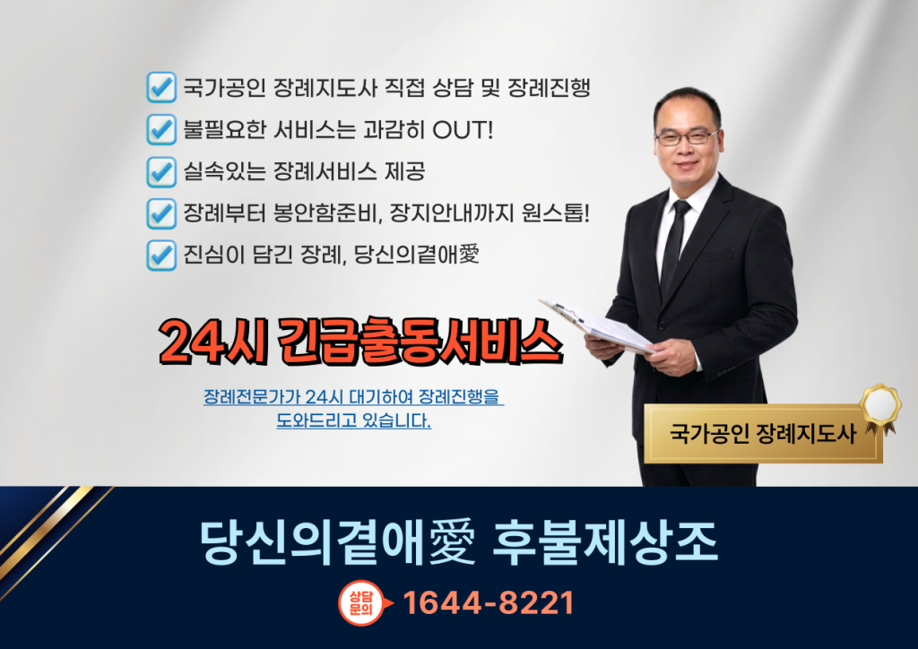 한밤중 갑작스럽게 울린 전화 너머로 들려온 비보, 머릿속이 하얘지고 눈앞이 캄캄해지는 그 순간 당황하지 않고 차분하게 고인을 모실 수 있도록 곁에서 올바른 방향을 알려주는 존재가 있다면 유가족에게 얼마나 큰 의지가 될까요. 사랑하는 가족과의 영원한 작별은 평생을 살면서 마주하는 가장 커다란 슬픔이자 견디기 힘든 고통입니다. 평소에 죽음을 미리 생각하고 대비하는 경우는 매우 드물기 때문에, 당장 임종을 맞이하게 되면 슬픔을 온전히 추스를 새도 없이 장례식장 섭외부터 빈소 차림, 그리고 각종 행정 처리까지 수많은 결정의 무게를 유가족이 온전히 떠안게 됩니다. 가장 경건하고 차분하게 고인을 추모해야 할 소중한 시간이 낯선 절차와 복잡한 비용 문제로 얼룩지지 않기 위해서는, 내 가족의 일처럼 진심을 다해 모든 과정을 함께 걸어갈 믿음직한 조력자를 만나는 것이 무엇보다 중요합니다.
